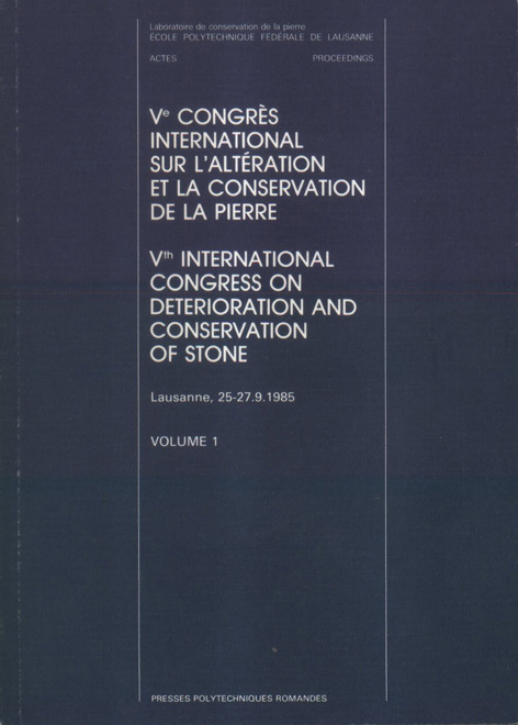 Ve Congrès internacional sur l'altération et la conservation de la pierre. –Vol. 1.